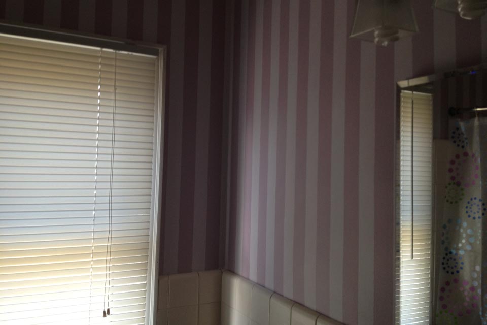 | Bathroom walls with stripes. |